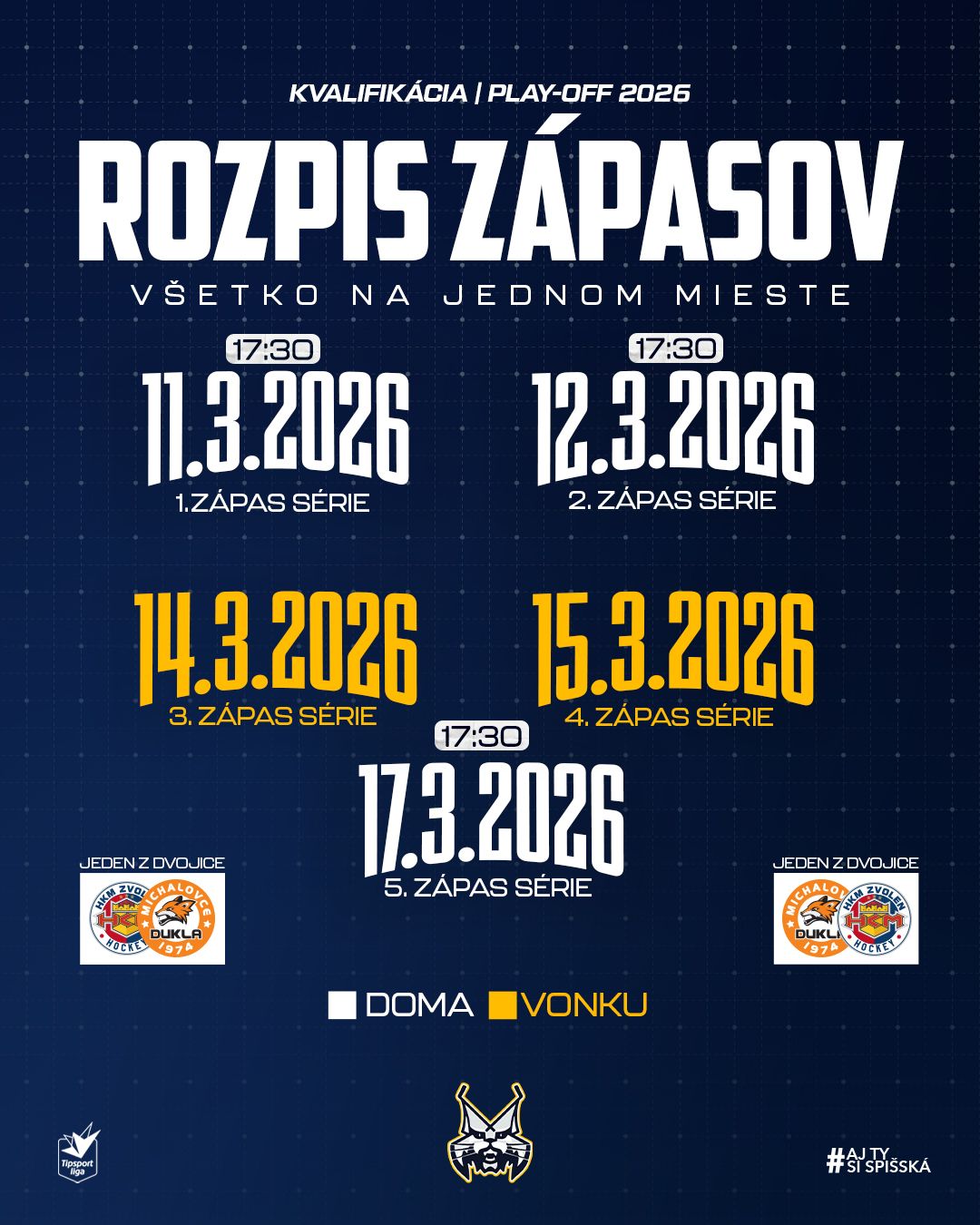 Posledný možný piaty zápas kvalifikačnej série je na programe v utorok 17. marca. Ak sa podarí postúpiť medzi najlepšiu osmičku, štvrťfinále štartuje už v piatok 20. marca. V tom prípade by bol našim súperom slávny HC Slovan Bratislava.